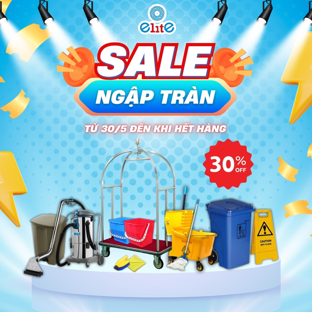 Elite VDP triển khai chương trình khuyến mãi đặc biệt dành cho khách hàng mua sắm dụng cụ và thiết bị vệ sinh chuyên dụng trong dịp lương về. Với mức giảm giá lên đến 30%, đây là cơ hội tuyệt vời để nâng cấp thiết bị làm sạch cho doanh nghiệp, nhà hàng, khách sạn hoặc các đơn vị cung cấp dịch vụ vệ sinh chuyên nghiệp.