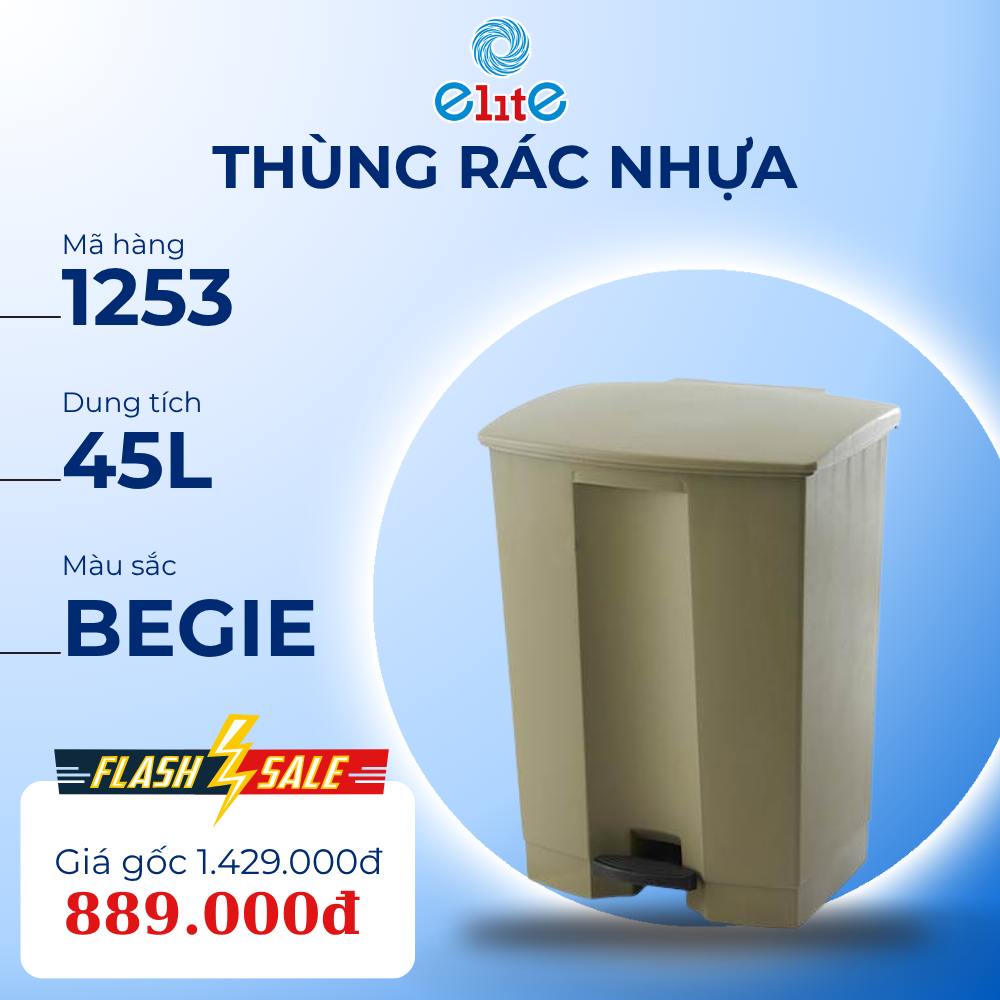 Thùng rác bằng nhựa 45L màu Beige - 1253